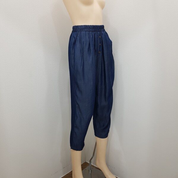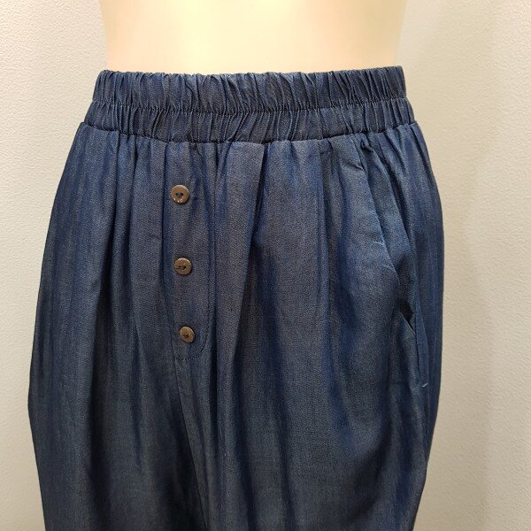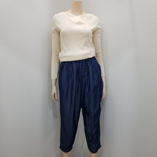 2018년 가을 신상 팬츠로, 단추를 포인팅으로 넣은 유니크한 디자인의 배기 팬츠입니다.