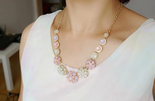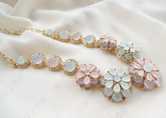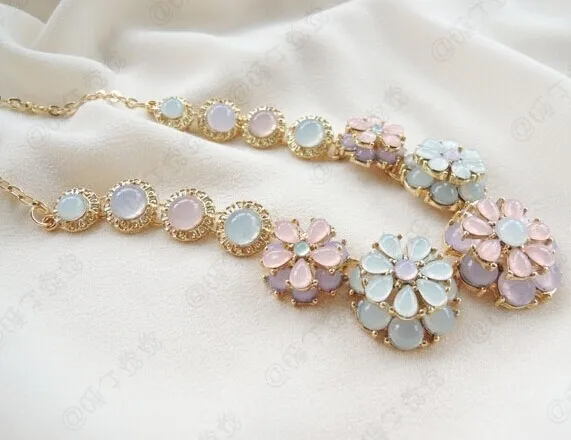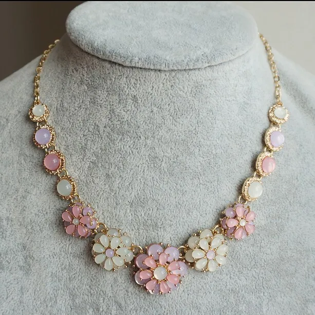 Fashion Jewelry Vintage Bohemia Women Necklaces & Pendants Link Chain Necklace Bubble Flower Gem Pendant Necklace For Women