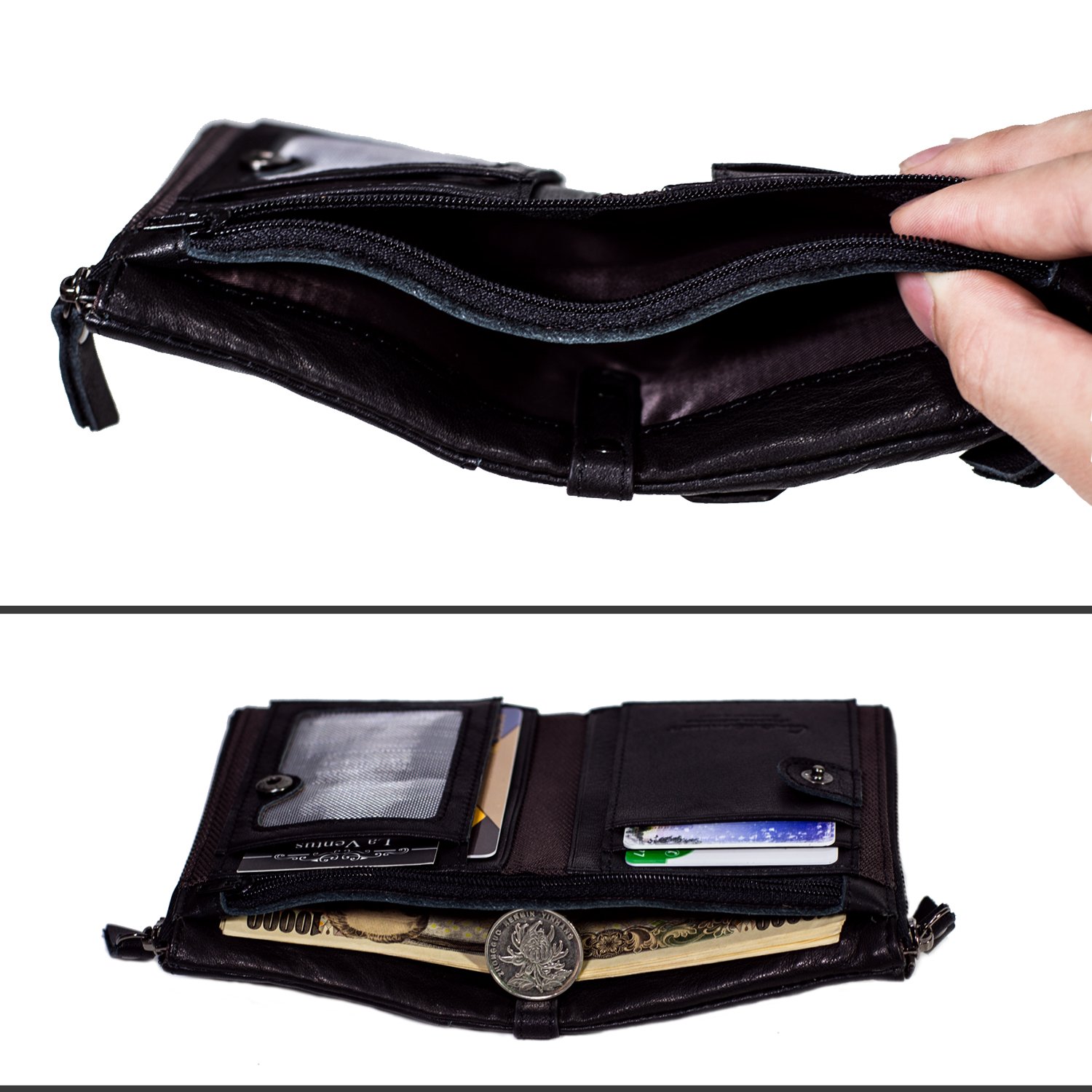 Since there are two zippered pockets on the outside, you can use it as a spare pocket as well as a card holder and coin purse.