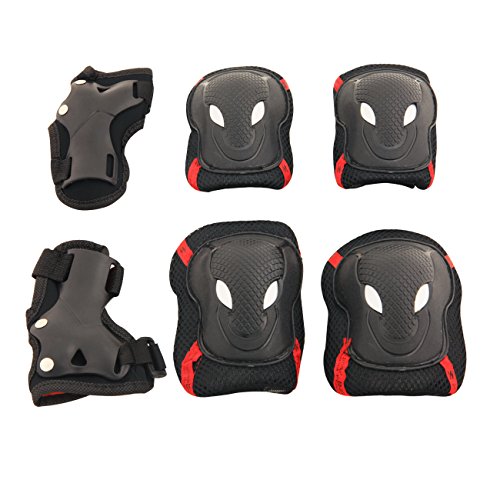 -. Feature : High hardness PVC shell, thickened soft sponge, comfortable and durable. / Velcro strap design, slip-resistant and convenient. / Elbow, knee and wrist 6pcs a set, bring you all-round and perfect protection while doing sports. / Fine workmanship and fashion outlook. / Suitable for skateboard, roller blading, riding a scooter, bicycle and many other outdoor sports.