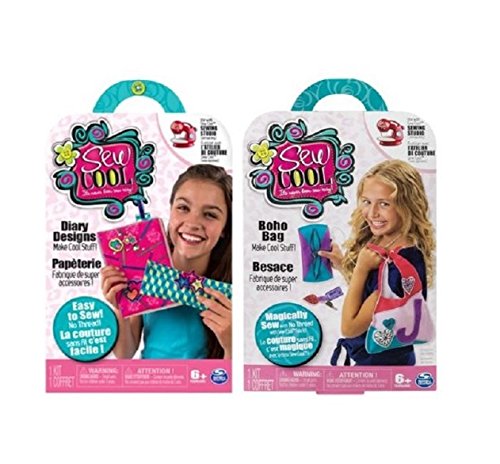Studio : Sew Cool Publisher : Sew Cool Product Description Sew Cool is simple and safe! No bobbins or needles required. There's no thread, just press the button and follow the dotted line! The Boho Bag Fabric Pack gives you everything you need to create a beautiful bag, purse and key chain! Sew Cool Sewing Studio sold separately. Personalize your Boho Bag with 12 gems and 10 fabric hearts. The Sew Cool threadless sewing system is for kids aged 6 . Sew Cool Sewing Studio sold separately. Additional creative fabric kits sold separately. Contents 3 Sew Cool Pre-Cut Projects 11 Sew Cool Decorative Fabric Pieces 12 Gems 1 Instruction Sheet The Diary Designs Fabric Pack gives you everything you need to create and decorate an awesome Diary! Sew Cool Sewing Studio sold separately. Personalize your Diary, Bookmarks and Pencil Case with 25 gems, 20 fabric charms and 8 buttons. Contents 4 Sew Cool Pre Cut Project 11 Sew Cool Decorative Fabric Pieces 12 Gems 2 Adhesive Strip Sets 1 Instruction sheet The Picture Frames Fabric kit gives you everything you need to create 3 beautiful picture frames. Sew Cool Sewing Studio sold separately. Personalize your Frames to suit your style with 11 decorative fabric pieces and 12 colorful, sparkling gems. Contents 3 Sew Cool pre cut projects 11 Sew Cool decorative fabric pieces 12 gems 1 instruction sheet Select Single package or 3 pack that includes all three fabric kits. 0