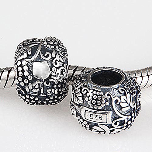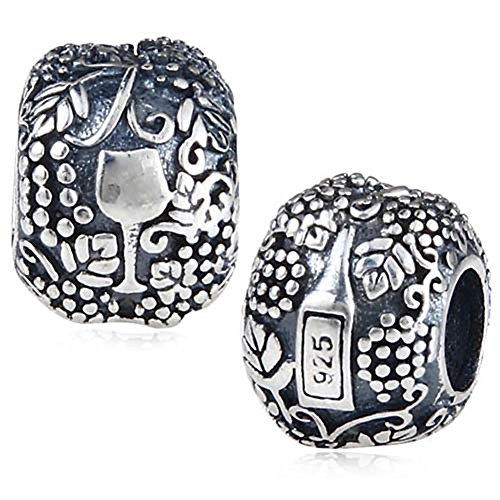 Vino Charm 925 Sterling Silver Grape Charm Wine Charm Glass Cup Charm for Pandoar Bracelet (B)