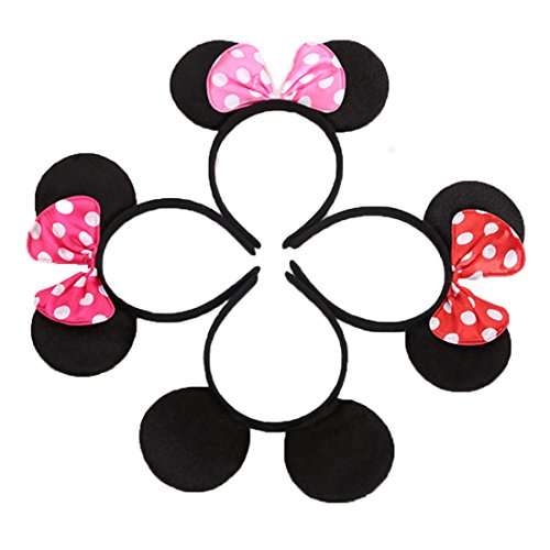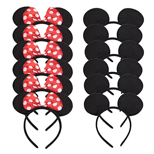 Set of 12 Mickey Minnie Mouse Costume Deluxe Fabric Ears Headband White Polka Dots Bow Boys Girls Birthday Party Hairs Accessories Baby Shower...