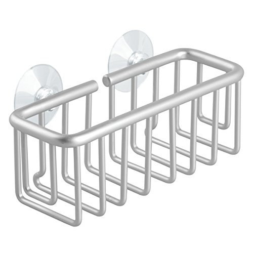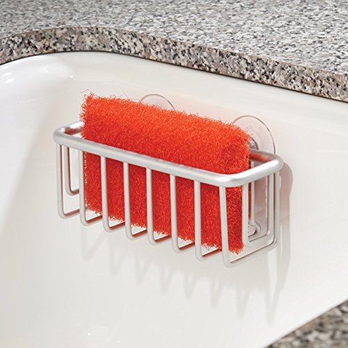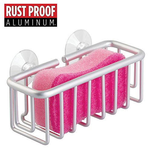 mDesign Rustproof Aluminum Suction Sponge Holder for Kitchen Sink - Basket, Silver