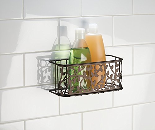 mDesign Suction Bathroom Shower Caddy Basket for Shampoo, Conditioner, Soap - Bronze
