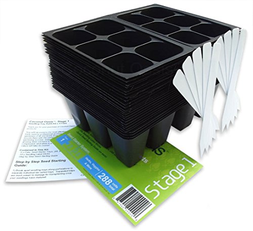 288 Cells Seedling Starter Trays w/ 10 Plant Labels and Seed Starter Guide by Coconut Oasis, (48 Trays; 6-cells Per Tray); STAGE 1
