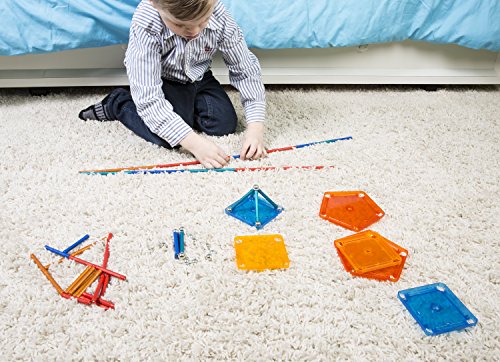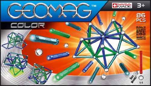 Geomagworld SA has fostered simultaneous learning and creativity since 2008. All Geomag products are designed, developed, and produced in Switzerland and follow the highest European and American safety and quality standards. At Geomag, our top priority is designing toys that amuse and stimulate children’s sense of fantasy, curiosity, and creativity. We believe that helping young minds hone their abstract problem solving and complex reasoning skills is crucial for their transition into functioning adults, and all of our products reflect that mentality. Our 86-Piece Color Construction Set with Assorted Panels contains all the magnetic pieces and panels you need to create structurally sound and aesthetically marvelous creations. Whether it’s form, function, or a little bit of both, your ultimate vision is up to you and your imagination! Warning: CONTAINS SMALL PARTS. Not suitable for children under the age of 3. Recommended for children ages 5 and up. Warning: CONTAINS STRONG MAGNETS. Keep away from sensitive devices such as credit cards, computers, magnetic media and medical devices like pacemakers.Feature