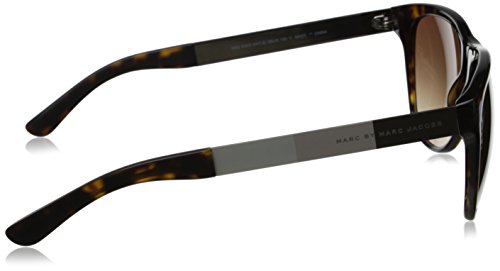 Marc by Marc Jacobs Sunglasses style MMJ 408/S is an oversize rectangular plastic frame with striped detailing on the metal temples. The MMJ 408/S features a saddle nose bridge and plastic temple tips for superb comfort and fit. The Marc by Marc Jacobs logo is featured on the temples. Marc by Marc Jacobs Sunglasses have lightweight scratch/impact-resistant lenses.Feature