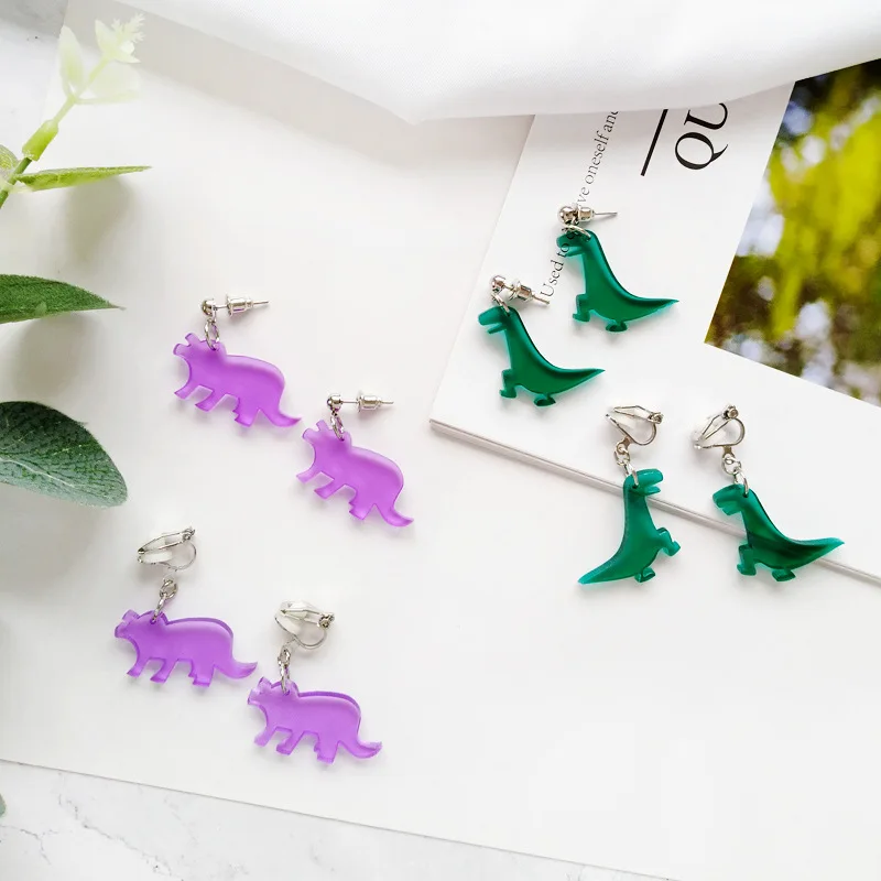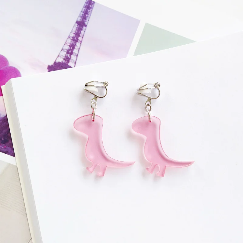 Decoration on earrings:Cute Acrylic Animal Dinosaur Children Clip Earring Without Piercing