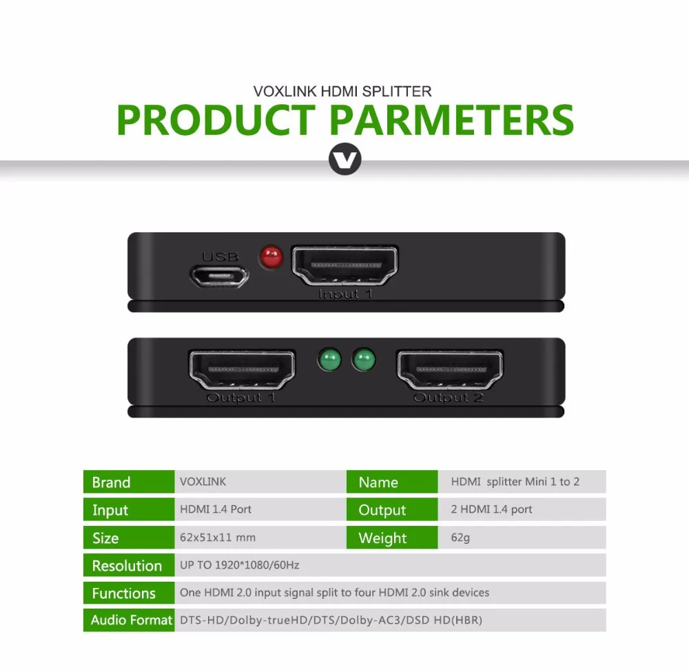 model name : 1 to 2 HDMI splitter