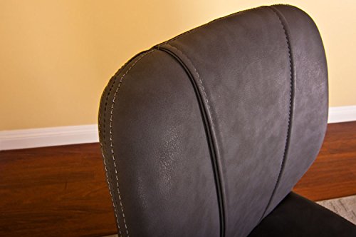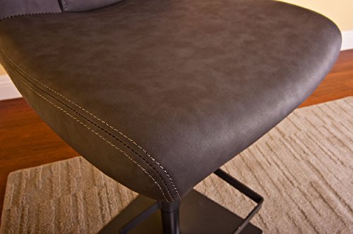 - Feature : Streamlined but Stylish: Sleek stand with matte finished footrest / Built to Last: Sturdy square metal base / Quality Upholstery: Grey suede leatherette and plush cushioning makes for a comfortable sit. Stool's back cushion is detailed with 2 vertical lines, straying from the typical. / Modern Seating for the Den: Create social seating in any room / Adjustable height: Stool allows for a height range of 38 inches to 47 inches.