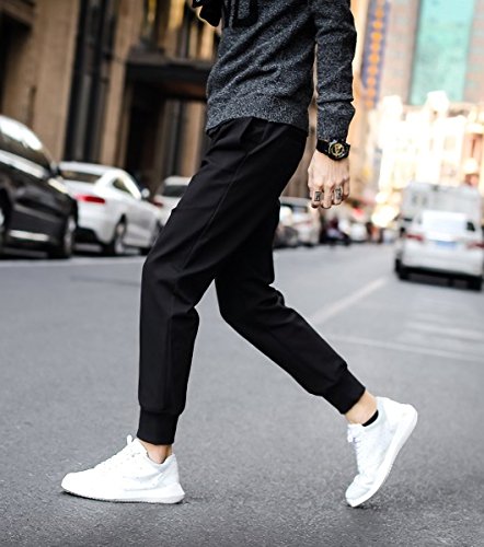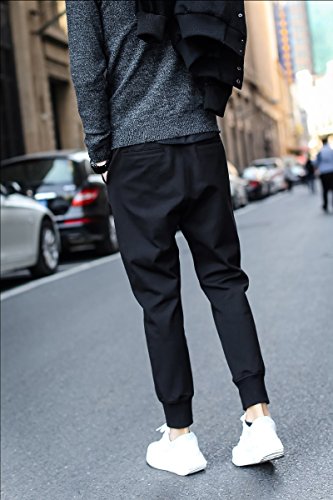 -. Feature : 落ち着いた色合いの無地なので、トップスをテーラードやジャケット・コートやデニムにハットを組合せにジャケパンコーデのハズシとしてジョガーパンツは大活躍。 また、パーカーやma1・ダウンジャケットなどにインナーをTシャツとスニーカーでカジュアルに崩してタウンユースなコーデに昇華させる事も抜群ですよw / 履き心地の良い美脚スタイルでアウトドア、ダンス、スポーツ、リゾート、カジュアルに普段の街歩きに、様々なシーンでお使いいただけます。スリムですらっとした作りになっており、シューズがパンツに隠れることなくお気に入りのスニーカー、バッシュ、ブーツ、サンダル、スリッポン、靴とのコーディネートもしやすいです。 / 【小さめサイズなので余裕を持ったザイズをご検討下さい!】オシャレなオールシーズンでご利用できる、ジョガーパンツです。スキニータイプですらっとした作りになっております。スタイリッシュでかっこいい!穿くだけでお洒落♪スッキリした印象!!裾口がゴム入りなので、丈長さの少し変えれたりとアレンジも可能です♪スニーカーとカバーソックスの組合せでカジュアルなコーデネートを演出する事もOK! / 【カラー】黒(ブラック)【素材】 ポリエステル混 【原産国】中国製 サイズ目安 【M】ウエスト<72cm> 27cm-46cm 総丈92cm ヒップ45cm 太腿周り26cm 裾周り11cm 【L】ウエスト<76cm> 28cm-49cm 総丈93cm ヒップ48cm 太腿周り28cm 裾周り11cm 【XL】ウエスト<82cm> 29cm-51cm 総丈95cm ヒップ51cm 太腿周り30cm 裾周り11cm 【XXL】ウエスト<86cm> 30cm-54 総丈96cm ヒップ54cm 太腿周り32cm 裾周り11cm *平置きにて採寸 多少の誤差はございます。お手持ちのお洋服を参考にサイズを御確認下さい。 / *お尻のポケットはダミーで実際には使えません。 商品は中国より輸入品の為 中国向けサイズです。 デザイン特性上足回りがやや細めとなっております。ご購入の際にはサイズ表をよく確かめてお買い物て下さい。少し余裕を持って着たい場合は、1~2サイズ大きめの商品をお求めください。お写真の色はご覧になっているパソコンなど環境によって色味が違って見えることがございます、予めご了承下さい。