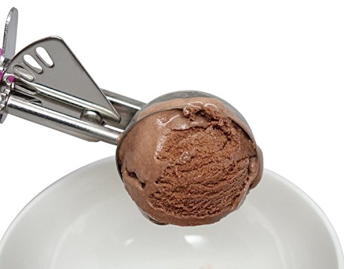 STEEL RELEASE LEVER FOR EASY SCOOPING: This 60ML /(1/4 cup) scoop comes equipped with a scoop release lever to easily scoop out only ONE ice cream scoop.