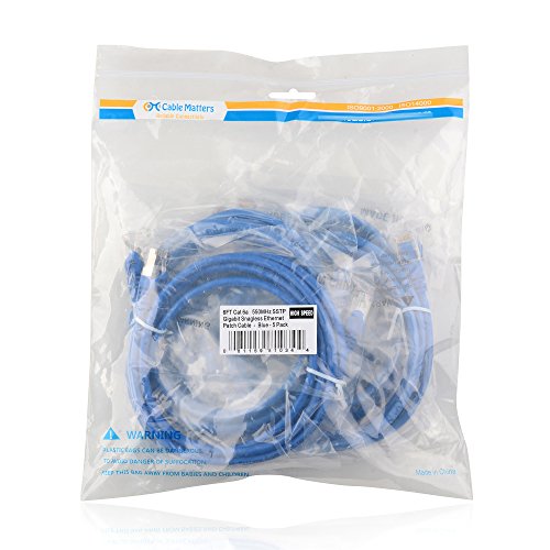 Cable Matters 5 Pack, Cat6a Snagless Shielded (SSTP/SFTP) Ethernet Patch Cable in Blue 4 Feet