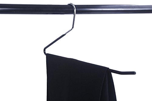 -. Feature : Heavy Duty - Made of stainless steel with eco-friendly black rubber paint coating / No deformation with strong ability - No worry about deformation even if put multiple items on the same hanger / Space-saving Design - Maximize your storage room in your closet,can also be used with scarves, ties, cover ups and towels / Convenient Open-ended Design with non-slip bar - Now you can get the pants out of the closet in a hurry without even having to remove the hangers / Smooth & Delicate Surface- No sharp edges, well protect your clothes and your hands