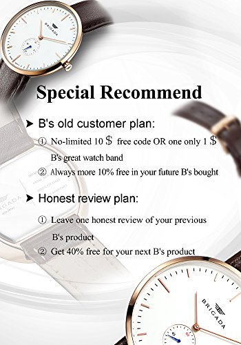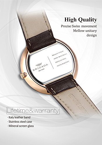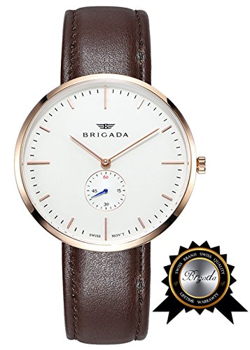 -. Title : Brigadaスイスブランド超薄型自動手首腕時計forメンズレディース,ステンレススチールCase Quartz Watch水抵抗、ブラウンレザーMinimalist Watch