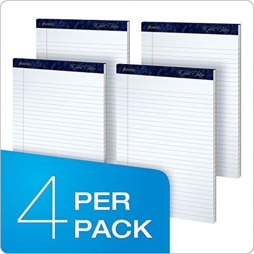 Ampad Gold Fibre Writing Pads, Legal/Wide Rule, Letter Size (8 1/2 in x 11 3/4 in), White, Four 50-Sheet Pads per Pack (20-031)