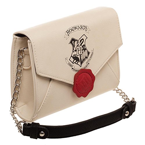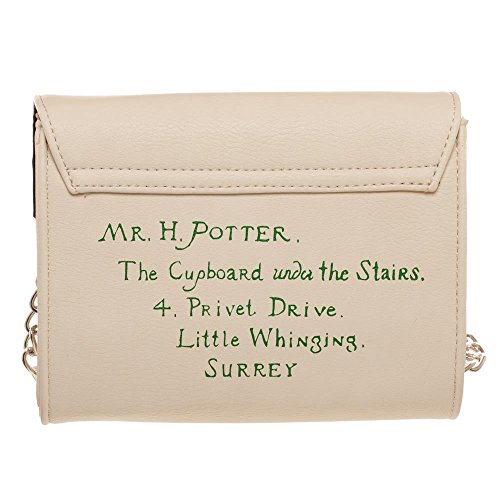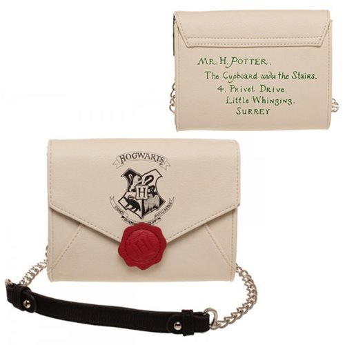 Are you still waiting for that special letter? We're so sure that it got lost in the mail. Some owl got distracted by a?delicious?mouse and dropped your letter while it was on the hunt. You can be sure Hagrid didn't train that white feathered?delinquent, his trainees always get those Wizarding letters there on time. Now, you might not have gotten to your wizarding education?on time but you'll feel a little better when you receive this purse designed after that longed after letter.?? The white faux leather purse is square and structured with?an?envelope-like flap bearing the Hogwarts seal and the Hogwarts shield and motto. The back has Harry's?address?inscribed in green lettering. The purse has a silver chain and a black strap with silver brackets. The flap secures with a magnetic closure and the interior has a zipper pocket for your easy to lose magical items. It's a great way to show everyone that you finally got that long-awaited letter!? - Bag 0 |