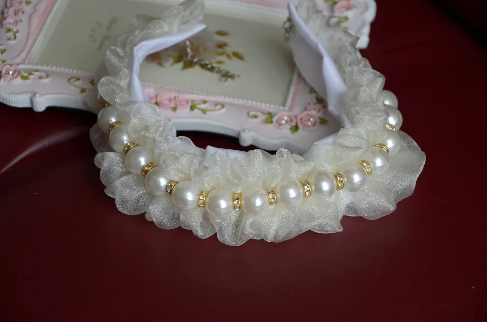 Name:Pet Dog Collar Lace Beige Scarf Collar