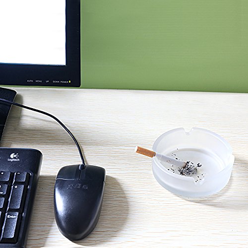 -. Feature : Made of glass, modern design, heavy duty(approx. 0.55 LB or 250g). A great gift for smokers. A beautiful art decoration for your desktop. / Perfect for small tables, desktops, bars, restaurants, etc. Dishwasher safe, easy to clean. / 4 cigarette-holder slots, good for emjoy smoking with friends. / Approx. diameter: 4.15 Inches(10.5 cm). Approx. Height: 1.36 Inches(3.5 cm) / We guarantee quality and service. Fully Refund if you are unsatisfied!