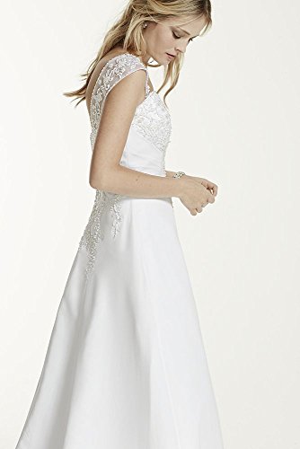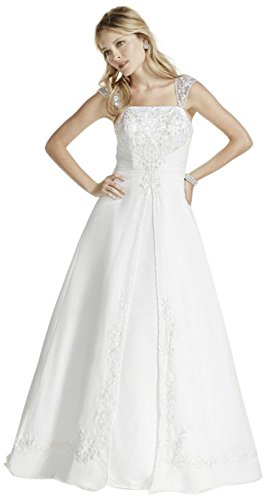 Studio : David's Bridal Publisher : David's Bridal Binding : Apparel Product Description Imagine walking down the aisle wearing this gorgeous trumpet weddiing dress! Elegantly crafted with allover lace, this gown features a deep v neckline, soft straps and empire waist. Select this dress and you ll have beauty at its best. David's Bridal Collection. 0