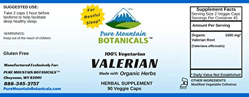 -. Feature : Our Certified Organic Valerian Root powder capsules support Normal Restful Sleep and Relaxation.* / Valerian root powder has been used medicinally for over 2000 years, described as early as 40 AD by the Greek physician Dioscorides.* / Our Valerian Root Capsules are VEGETARIAN, KOSHER and GLUTEN FREE. Feel Secure Knowing You're Only Putting the Absolute Best Product in Your Body, Made with NO Harsh Preservatives, Fillers or Flowing Agents - NO Sodium Benzoate, NO Magnesium Stearate, NO GMOs / 100% MANUFACTURE'S MONEY BACK GUARANTEE - Try the Best - Risk Free! These Valerian Root Organic Capsules and ALL Products from Pure Mountain Botanicals™ are covered by a no-questions asked money back guarantee.