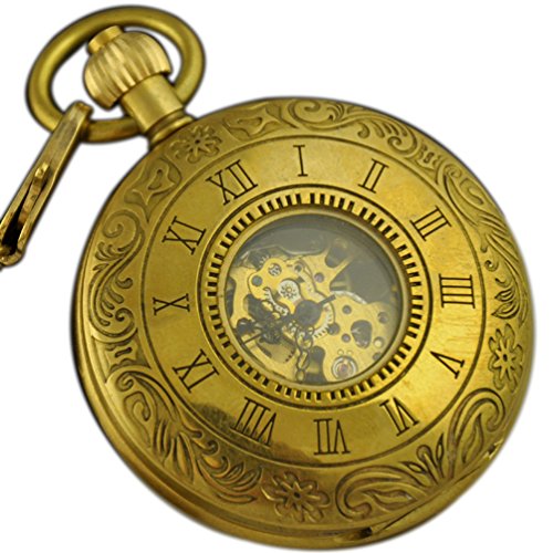 -. Feature : Half Hunter Pocket Watch, Flower Patterns Background, See Through Golden Skeleton, Beige Dial. / Hand-winding Mechanical Movement, provide precise and accurate time keeping. / Color: Golden, as the Picture show. Roman numerals dial analog display, very easy to read time. / The adjustable time knob is connected to the chain, just pull out the clock knob to adjust time / A Great Collection; The Best Birthday Gift, Valentine's Day Gift, Wedding Gift, Anniversary Gift, Christmas Gift, New Year Gift.