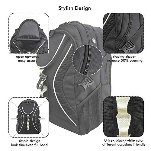 ★Unisex Suitable & Comfortable: The front U and two C shape white color nylon decoration lines make appearance unisex for men and women; looks slim even when it is fully loaded. The side belt strap will compact the whole backpack tidily and keep the weight near your body to be more comfortable. Well-padded vented Airmesh back panel. Adjustable contoured widen backpack straps. Really an ideal backpack for college adults, high school teens, elementary school boy and girl students.