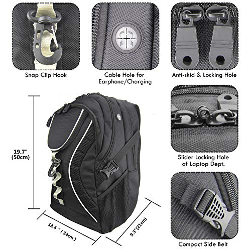 ★Multi-Purposes & Entertainment: The front locking snap Clip Hook can be used to hang wet clothes and shoes in hiking & camping, also you can personalize travel backpack with hanging ribbons/bell/doll. Good outdoor sports, weekend trip and work backpack. The headphone hole enable the music enjoyment during walking, you can also pull the USB cable through the hole for phone charging. Wonderful gift for birthday, Black Friday, Christmas.