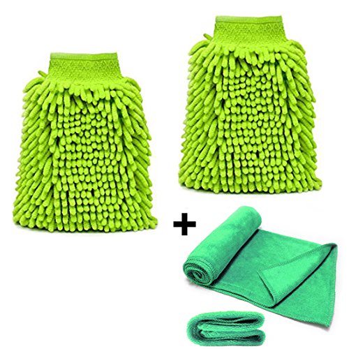 -. Title : Car Wash Mitts Newland (2-Packs) With Free Microfiber Cleaning Cloth Premium Chenille Microfiber Car Wash Mitt Gloves For Car Wood Mirrors Furniture Glass