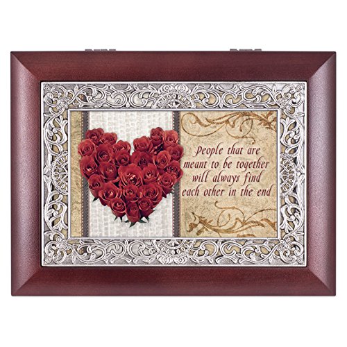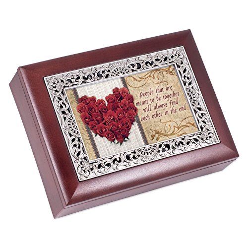 Meant To Be Red Roses Rosewood Finish with Silver Inlay Jewelry Music Box - Plays Tune Wonderful World