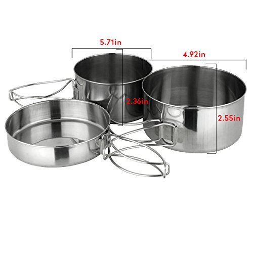 Durable Material: The CHANODUG Camping Cookware conducts heat quickly and is survival gear that is built to last. 410 stainless steel material is sturdy, no melt, good for health, and has a longer life time than titanium one
