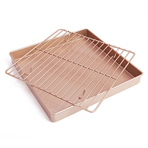 Baking Sheet Kit with Baking Rack Baking Mat Set of 3 Non-stick 11inch Gold by LUFEIYA