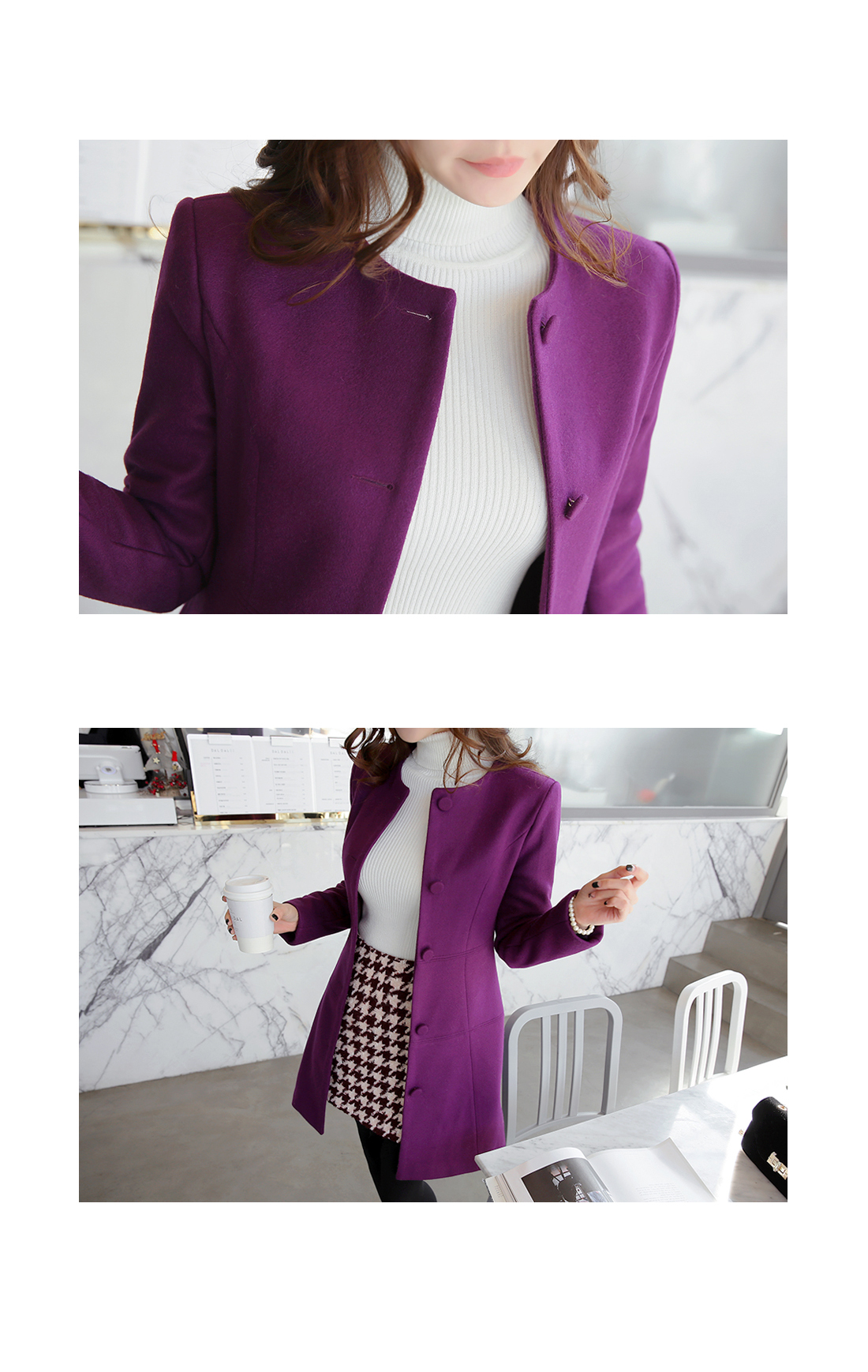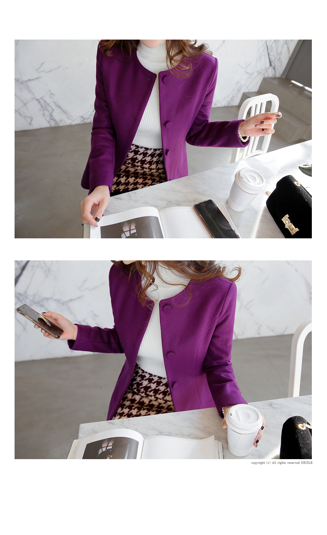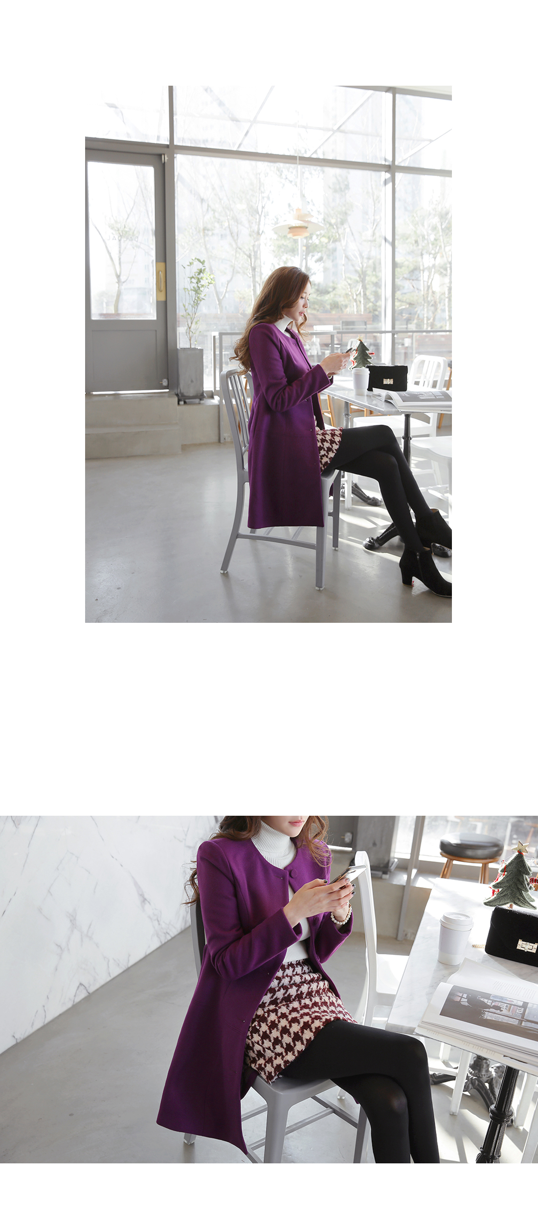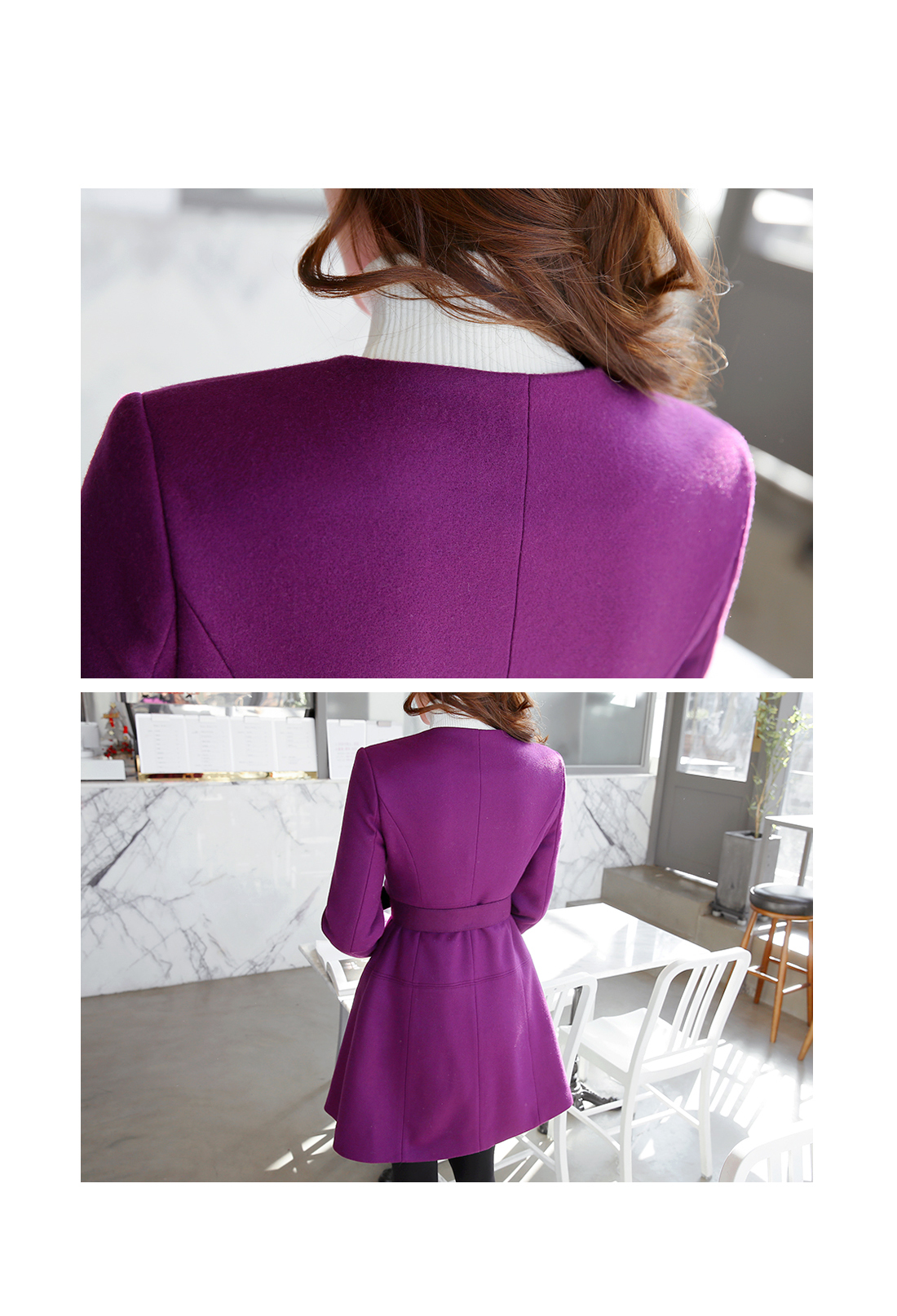 페미닌한 무드의 벨티드코트에요! 울 함유의 소재로 고급스러움이 물씬 느껴지는 모직코트구요 벨트가 세트로 구성되어 다양한 핏을 연출할 수 있는 아이템이에요~ A라인으로 살짝 퍼지는 실루엣이 원피스를 입은듯한 느낌으로 연출되구요 심플한 코디에 가볍게 걸쳐도 예쁜 페미닌룩을 완성해 준답니다! 데일리룩으로는 물론 겨울하객룩에도 잘 어울리는 코트세트랍니다^^