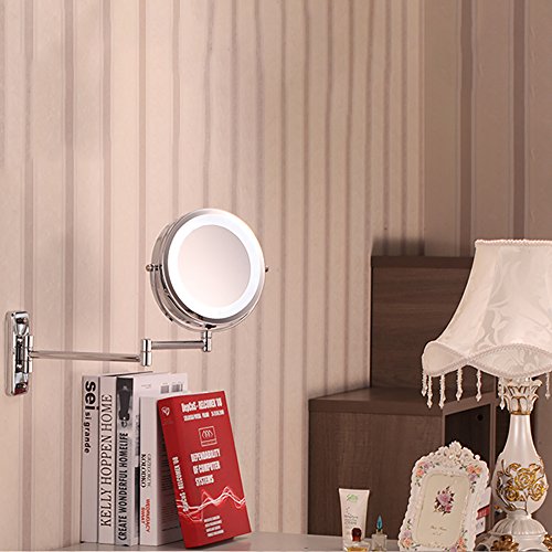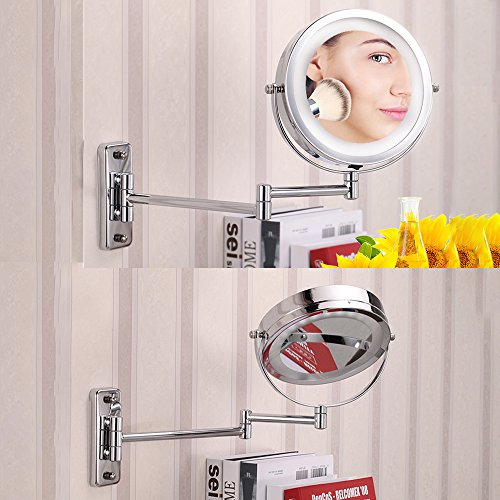 Beautiful Up Two-Sided 8 inch Battery LED Lighted Wallmount Vanity Makeup Mirror with 5x Magnification, Nickel Brushed