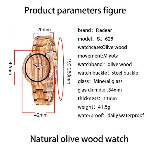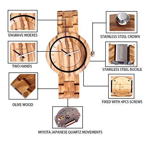 -. Title : Redear ウッド腕時計 ユニセックス 100%天然オリーブウッド クラシック ウッドウォッチ