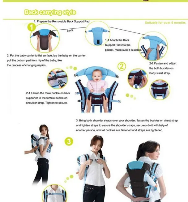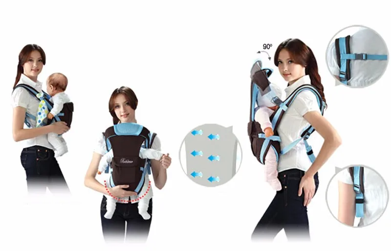 4 carrying position modes: Chest way, kangaroo style, back carry, cross arm carry