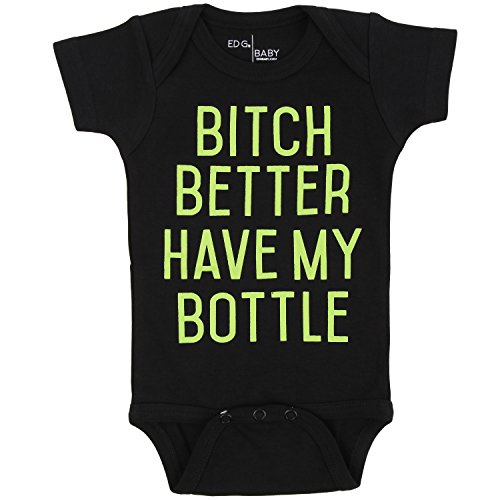-. Feature : "B*TCH BETTER HAVE MY BOTTLE" Bodysuit in Black by ED G Baby / Machine wash cold, gentle cycle; tumble dry low...do not iron on P.R.Inting. / An adorable bodysuit!!