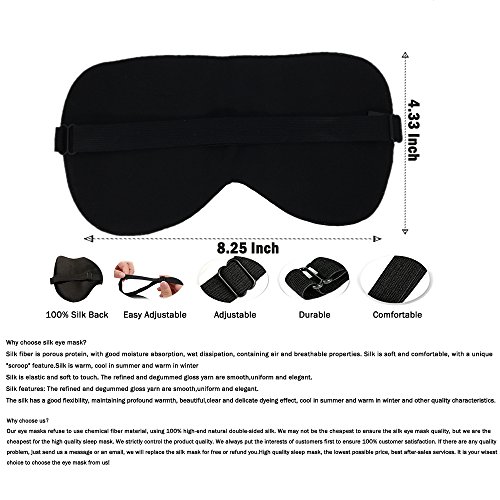- 100% NATURAL SILK EYE MASK:Comfortable, breathable, silk eye mask, treat your eye with a spa, relieve eye fatigue, dilute the dark circles. Skin-friendly silk sleep mask, so you have a comfortable rest. Double-sided silk eye mask, double-sided comfort experience. Skin care, comfortable, silk sleep mask contains a variety of amino acids, moisten your delicate skin.