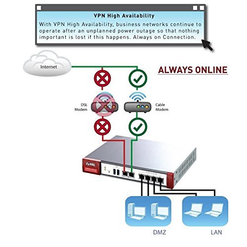 Up to 90Mbps Encrypted VPN throughput (IPsec/L2TP: 10 Concurrent, SSL: 5 Concurrent Upgradable to 15 Max) for Secure Remote Access, Office to Office or Device to Office