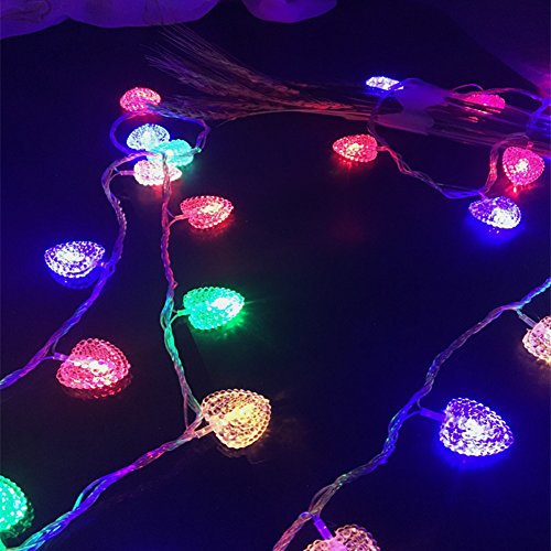 JOJOO Starry Heart Shaped Crystal String Lights, 30 LED Waterproof Fairy Curtains Lighting for Indoor, Outdoor, Wedding, Garden, Patio, Party and Holiday Decorations LT048 (Colorful heart 30LED)