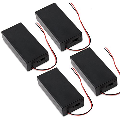 abcGoodefg 3.7V 18650 Battery Holder Case Plastic Battery Storage Box with ON/OFF Switch and strap (4 Pcs 2 Solts)