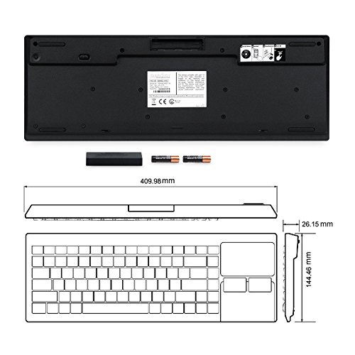 -. Title : Perixx PERIBOARD-716, Wireless Keyboard with Touchpad - 16.14x5.70x1.02 Inch Dimension - Large 3.2" Touchpad - On/Off Switch - 2xAA Duracell Batteries Included - US English Layout
