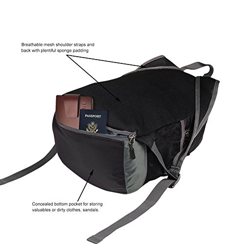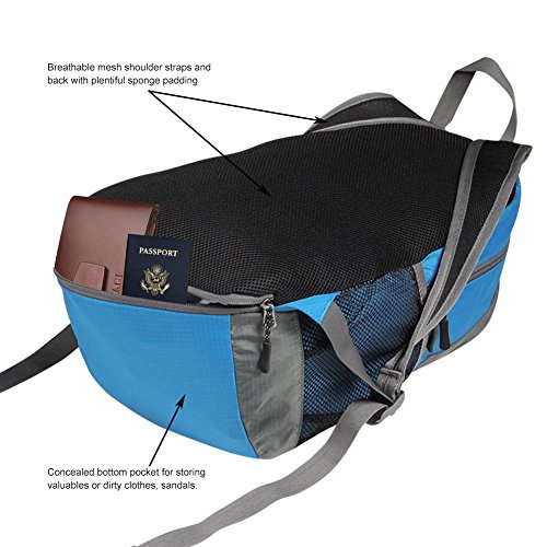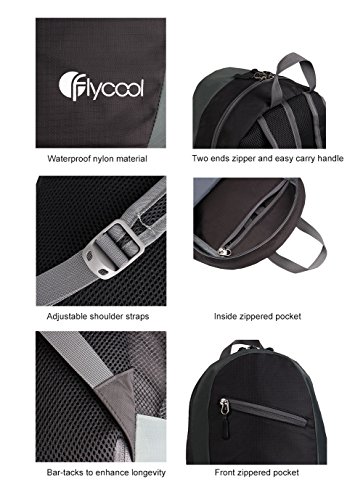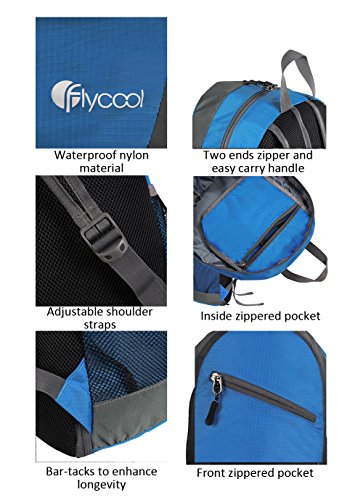 -. Brand : FLYCOOL -. Department : unisex-adult (lage only) -. Feature : FOLDABLE AND COMPACT: Our backpack folds up neatly into the included pocket, which can be stashed in your lage or carry-on bag. When you arrive at your destination, you can expands it into a full size backpack with lots of pockets to hold all your belongings. / HIDDEN BOTTOM POCKETS: A concealed zippered pocket on the bottom is designed to keep soiled or wet items separate from the rest of your stuff. It's also great for storing valuables(purse, passport) on the go. / MULTI COMPARTMENTS: This backpack features one main zipped compartment, one zipped front pocket and two side pockets. Two separators and a small pouch in the main compartment are convenient enough to help you further organize things and hold small accessories. Two side pockets are good for holding water bottles and umbrellas. / DURABLE: The backpack is made from highly rip and water resistant nylon fabric. Stress points are reinforced with bar tacking for increased longevity. Durable two ends metal zipper across the backpack. / COMFORTABLE: The back of the backpack and shoulder straps are mesh and padded so they're breathable and comfortable. Especially the shoulder straps with sponge padding can really help relieve the stress from your shoulder. -. IsAutographed : 0 -. IsMemorabilia : 0 -. ProductGroup : Sports -. ProductTypeName : OUTDOOR_RECREATION_PRODUCT -. Title : FLYCOOL Most Durable Packable Convenient Lightweight Travel Backpack Hiking Daypack
