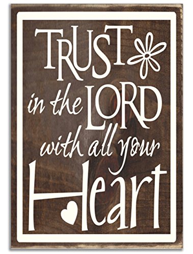 - Handmade Rustic Wood Sign, 11.25 x 16 x .75 inches - Trust In The Lord With All Your Heart. Made in the USA.