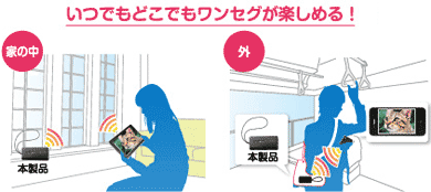 ???ワイヤレス接続だから、コネクターやケーブルでモバイル機器と接続する必要なし。いつものようにモバイル機器を持つだけでワンセグ視聴できる。