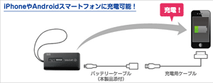 iPhoneやAndroidスマートフォンの予備バッテリーとして活用できる