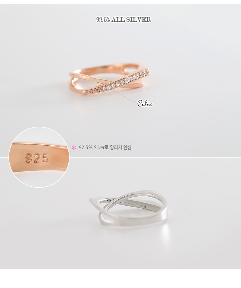 부드럽게 교차되는 큐빅라인이 우아하고 여성스러운 92.5실버링.