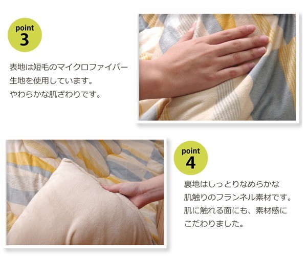 【素材】:表地=ポリエステル100%【短毛マイクロファイバー】 裏地=ポリエステル100%【フランネル】 中綿=ポリエステル100%