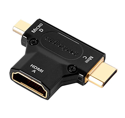 The AudioQuest HDMI A to C to D adapter singularly connects your smartphones, tablets, cameras and camcorders for use with larger displays.